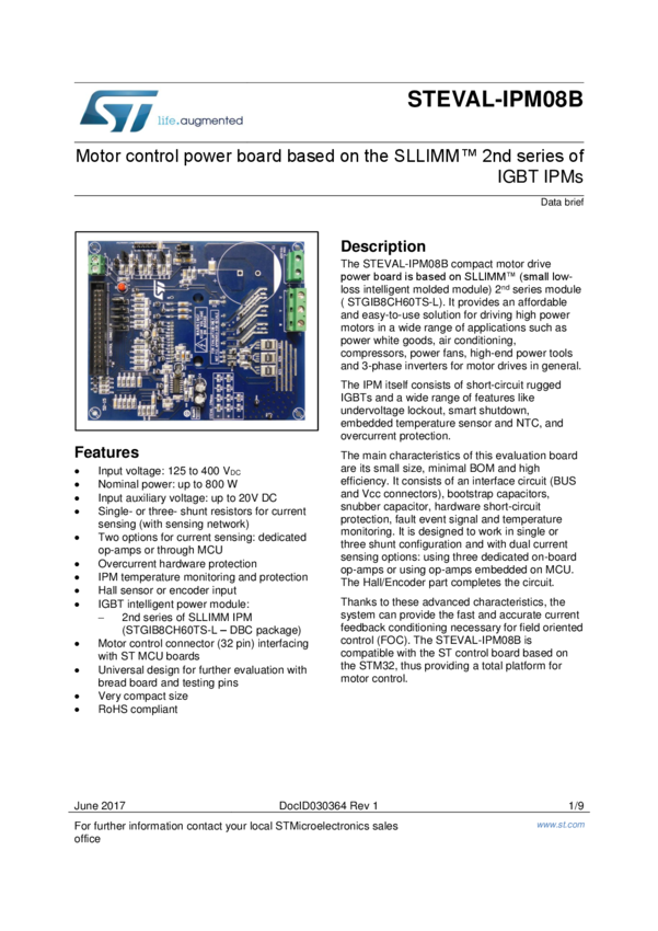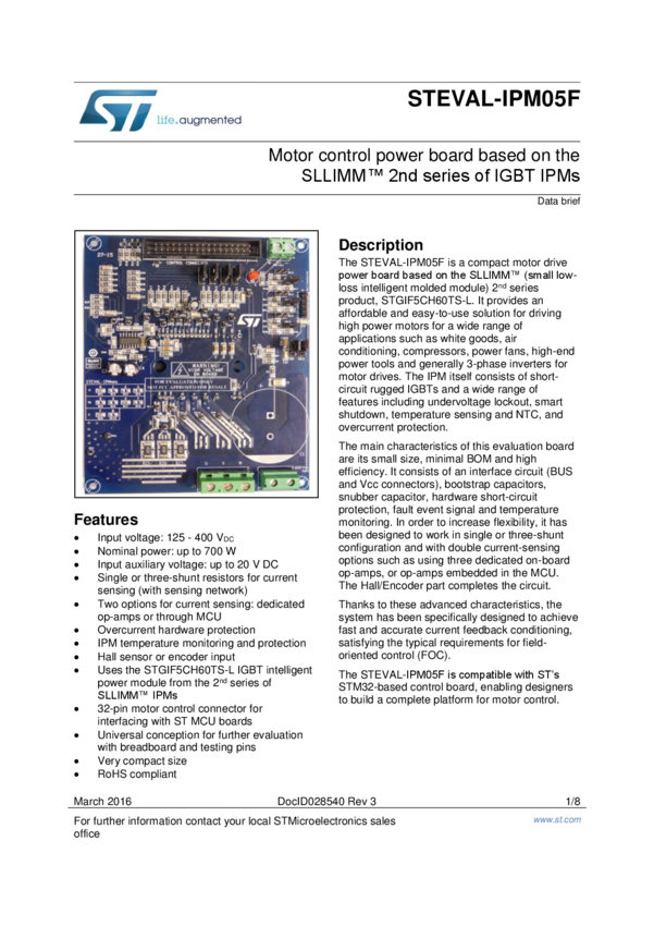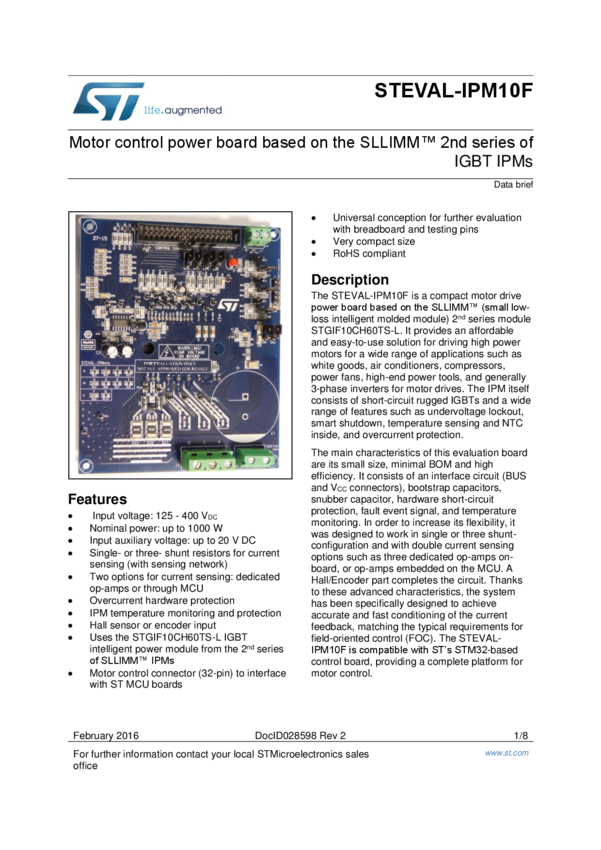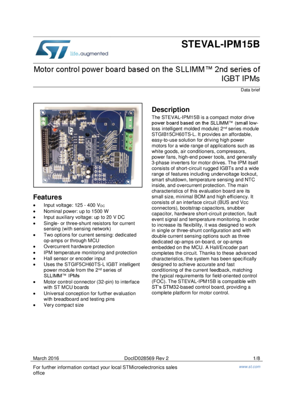 Motor control power board based on the SLLIMM™ 2nd series of IGBT IPMs