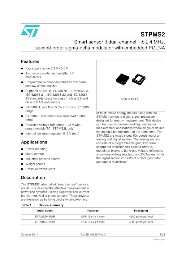 ASSP for metering applications with up to four independent 24-bit 2nd order sigma-delta ADCs, 4 MHz OSF and 2 embedded PGLNA