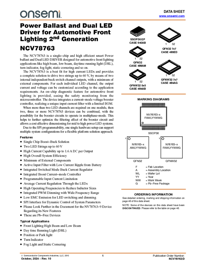 Dual LED Driver and Power Ballast, for Automotive Front Lighting, 1.6 A, 2nd Generation