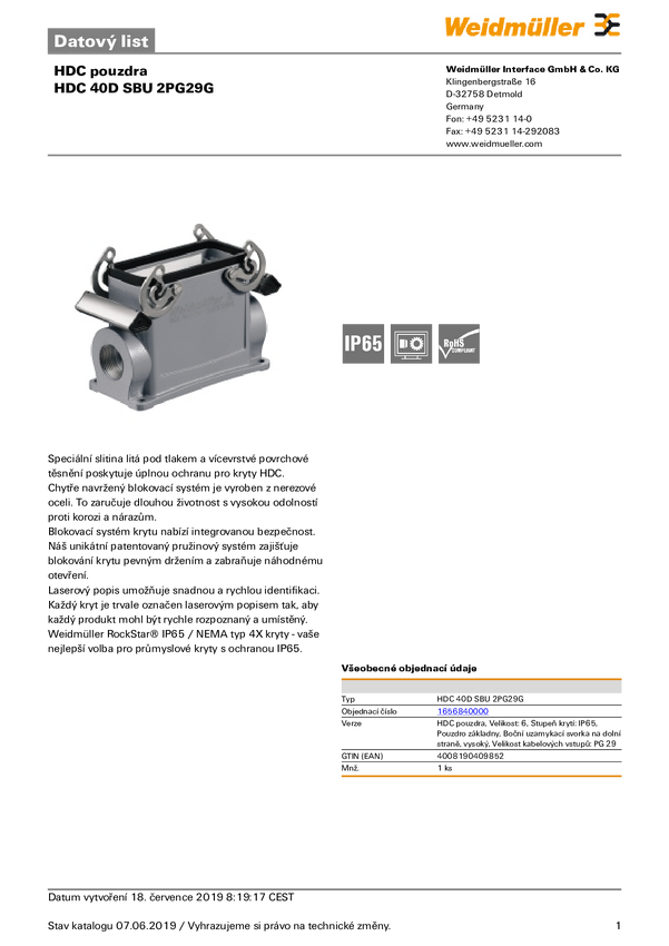 Weidmüller HDC 40D SBU 2PG29G 1656840000 Obudowa podstawowa 1 szt.