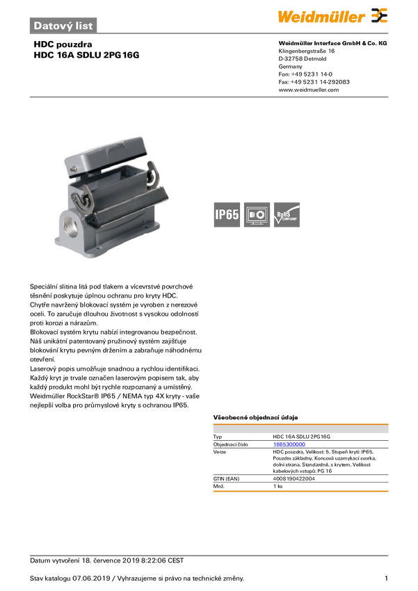 Weidmüller HDC 16A SLU 2PG16G 1665070000 Obudowa podstawowa 1 szt.