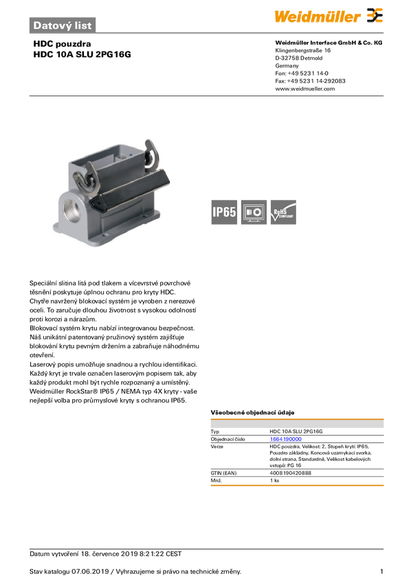 Weidmüller HDC 10A SLU 2PG16G 1664190000 Obudowa podstawowa 1 szt.