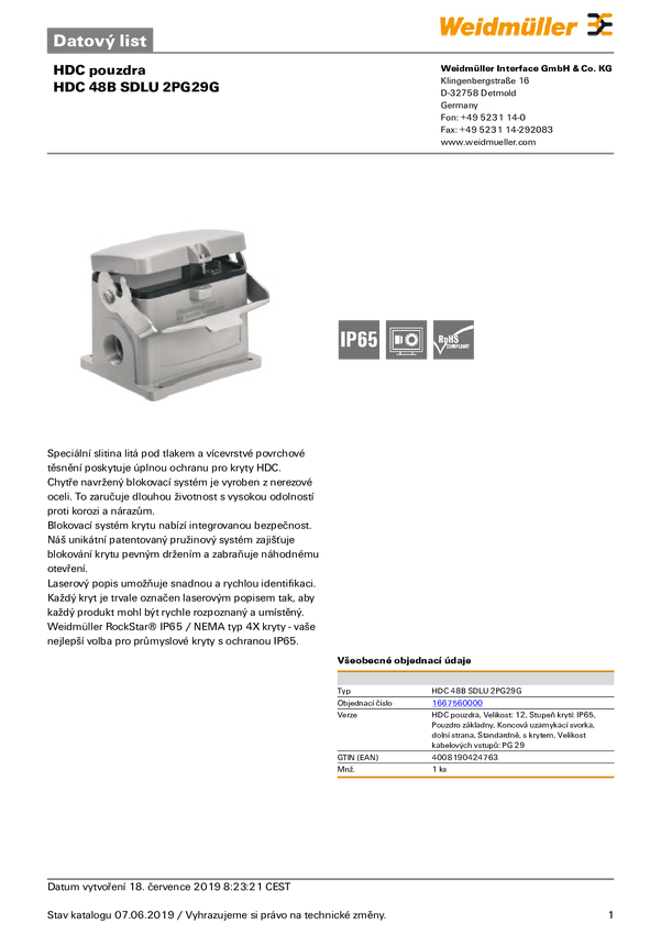 Weidmüller HDC 48B SDLU 2PG29G 1667560000 Obudowa podstawowa 1 szt.