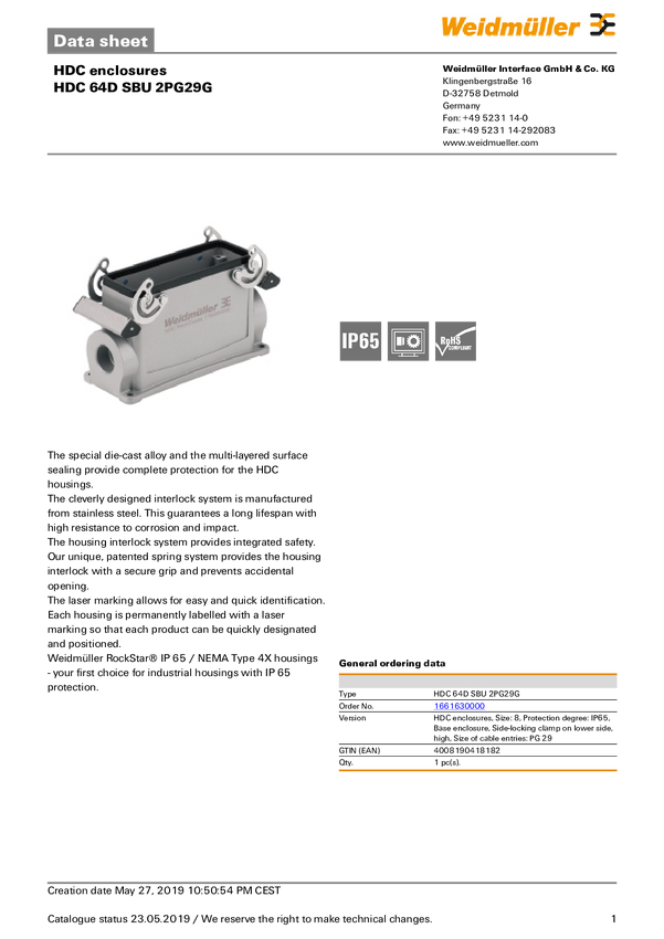 Weidmüller HDC 64D SBU 2PG29G 1661630000 Obudowa podstawowa 1 szt.