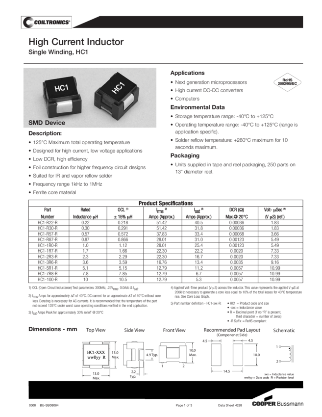 Ind High Current Power Wirewound 3.6uH 15% 300KHz Ferrite 16.76A T/R
