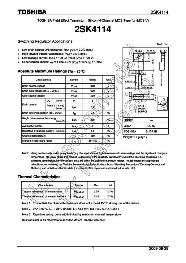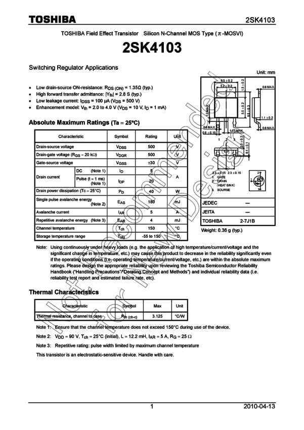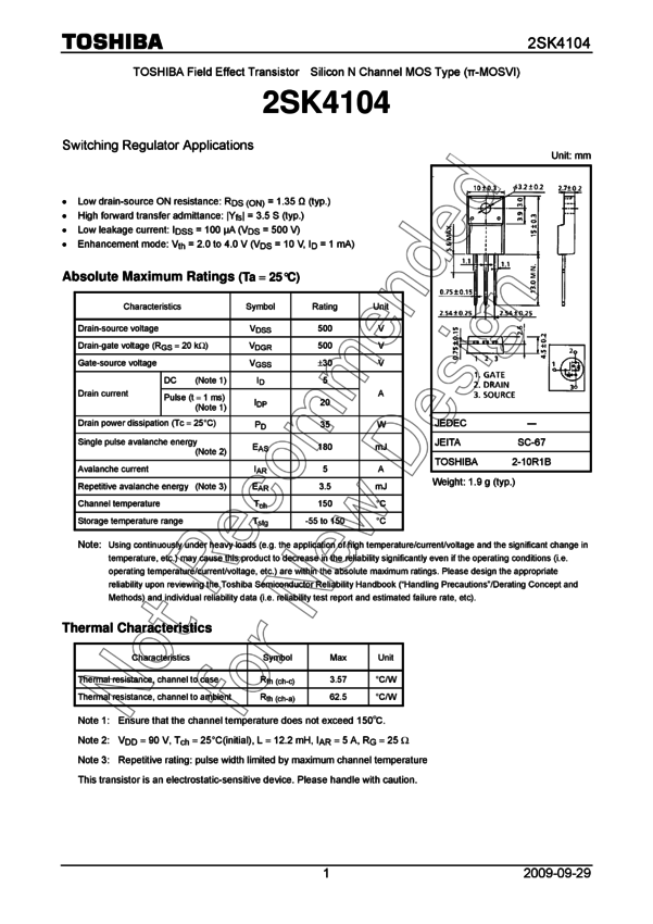 N-Channel Power MOSFET, 500V, 5.5A, 1.56Ohm, TO-220F-3FS