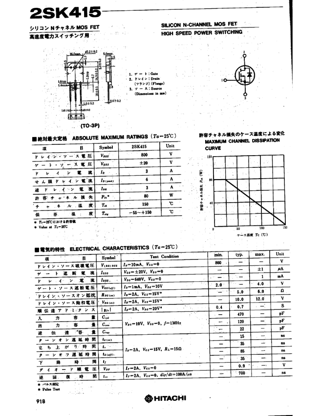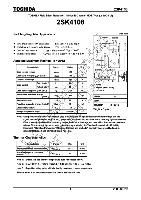 N-Channel Power MOSFET, 500V, 20A, 430mOhm, TO-3P-3L