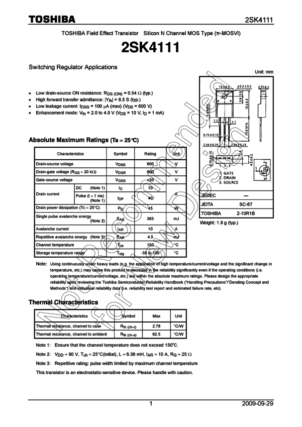 Power MOSFET 600V 5A 2.34 Ohm Single N-Channel TO-220F-3FS