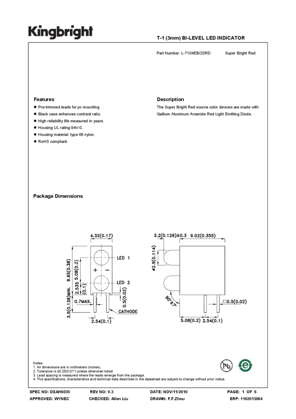 LED Bi-Level Uni-Color Red 660nm Standard LED 4-Pin T-1