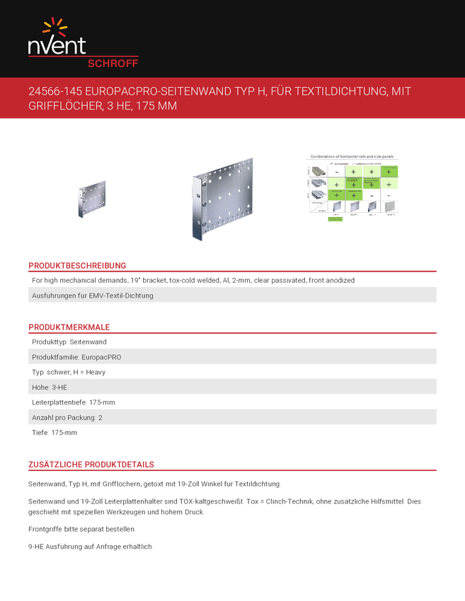 Ściany boczne SCHROFF typ H do uszczelnienia tekstylnego - SEITENWD.H 3HE 175T M.GR.2ST