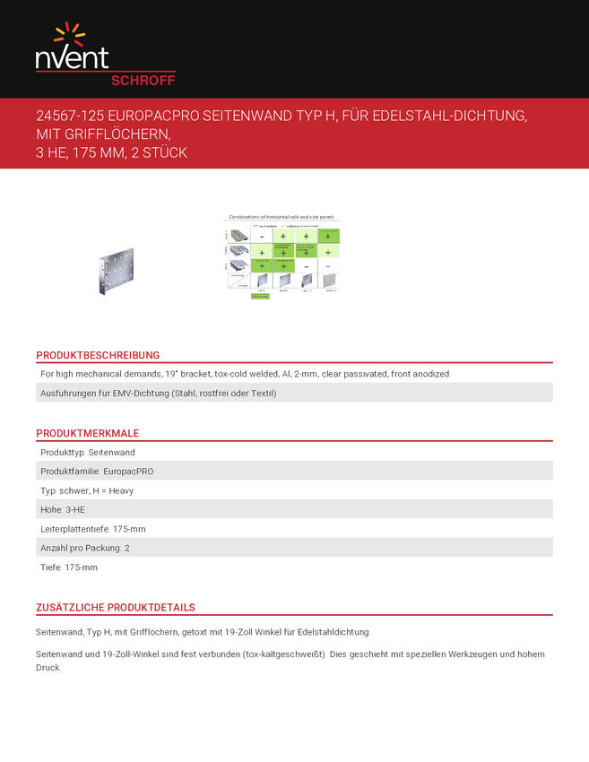 Ścianka boczna SCHROFF typ H do uszczelki ze stali nierdzewnej - SEITENWD.H 3HE 175T M.GR.2ST