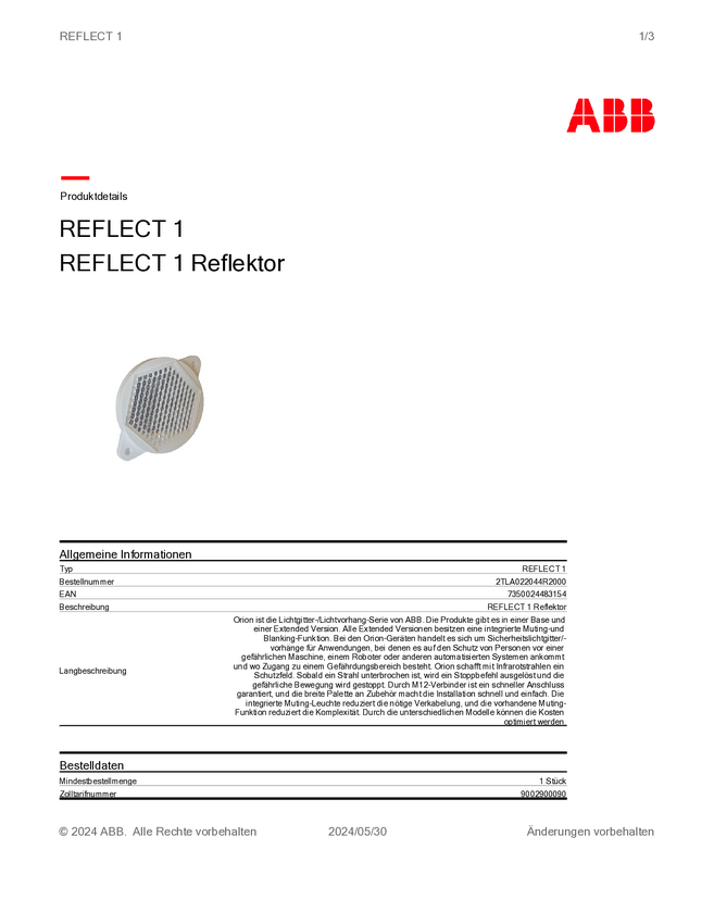 ABB 2TLA022044R2000 Odbłyśnik REFLECT 1 1 szt.