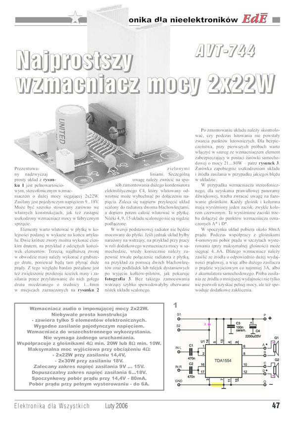 AVT744 Najprostszy wzmacniacz mocy 2x22W