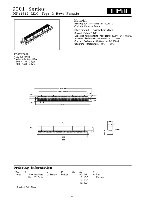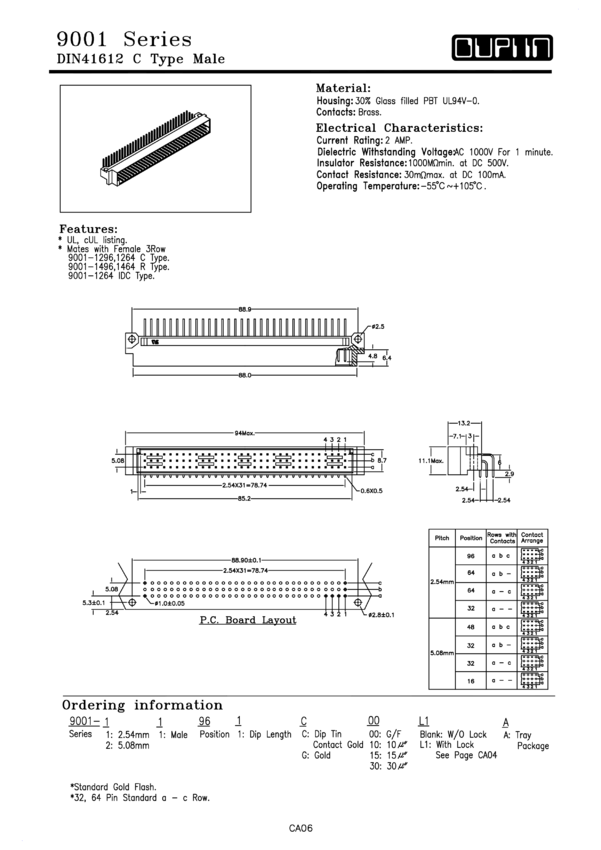 Złącze męskie typu Q, proste, 2x32 styków, L=4mm