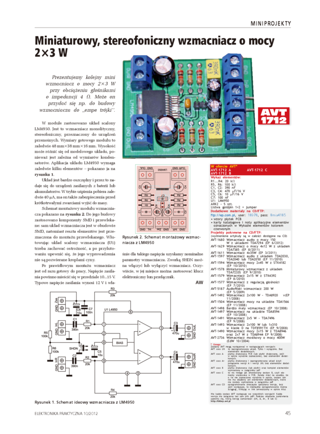 AVT1712 Miniaturowy, stereofoniczny wzmacniacz o mocy 2x3W