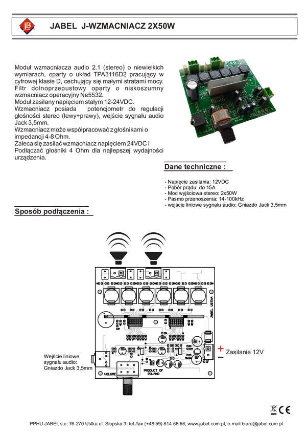 J-WZMACNIACZ BLUETOOTH 2X50W + SUB.