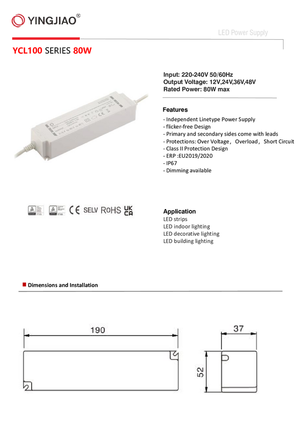Zasilacz do oświetlenia LED 24V 3,33A 80W wodoszczelny IP67 YINGJIAO | YCL100-2403330