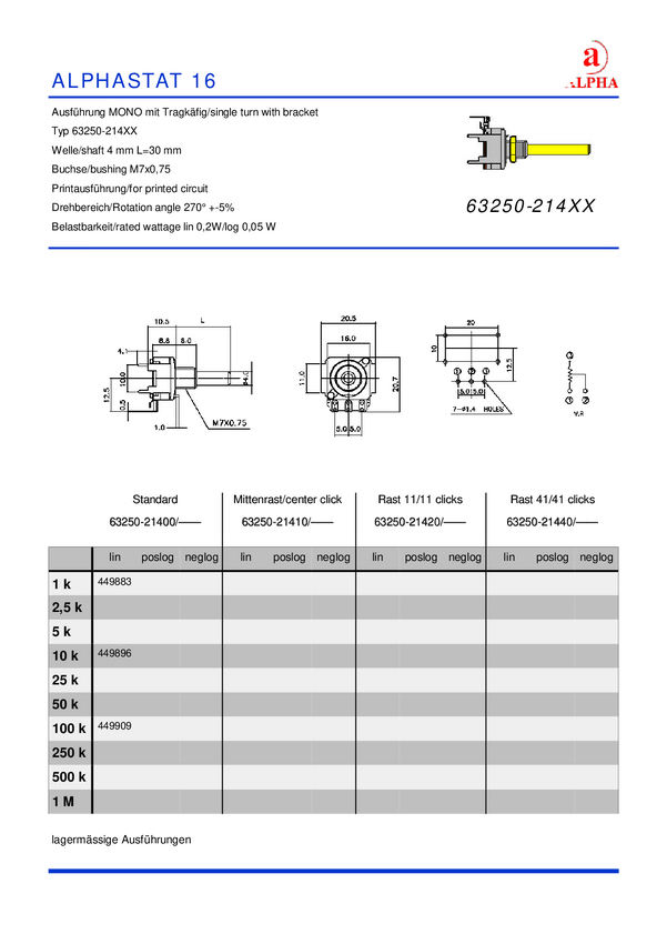Potencjometr drutowy Potentiometer Service Alphastat 16 3008, 100 kOhm, 0.2 W, Lin