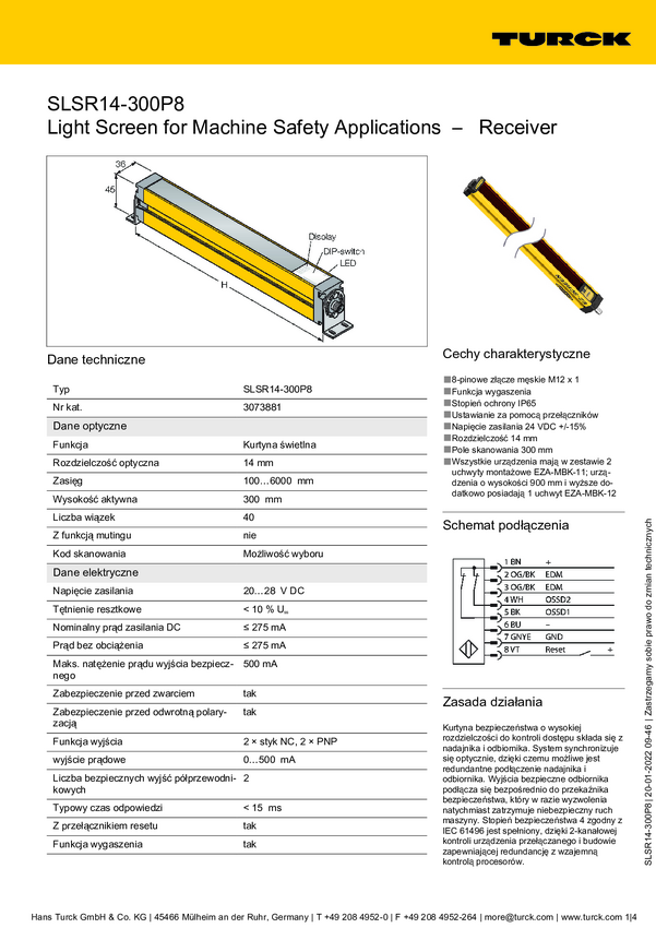 Turck Kurtyna świetlna SLSR30-300P8 Wysokość ochronna 300 mm