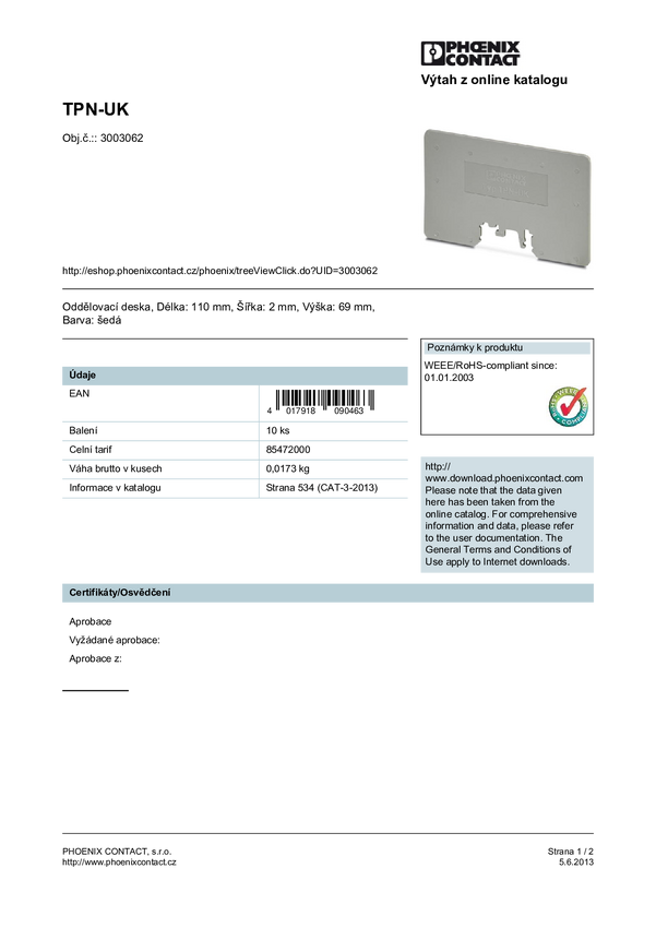 Phoenix Contact 3003062 Płyta rozdzielająca 10 szt.