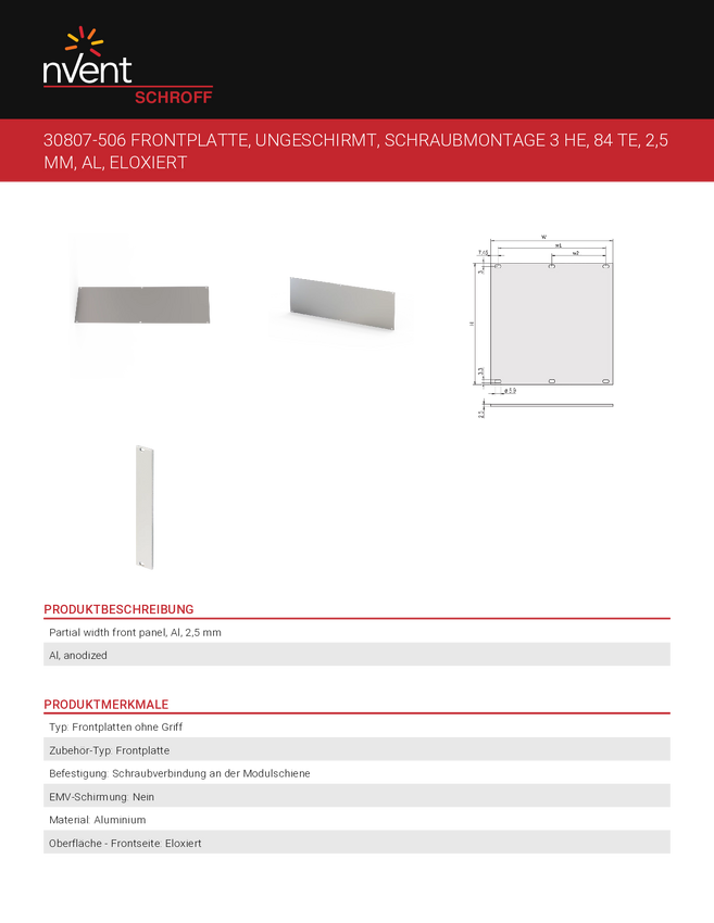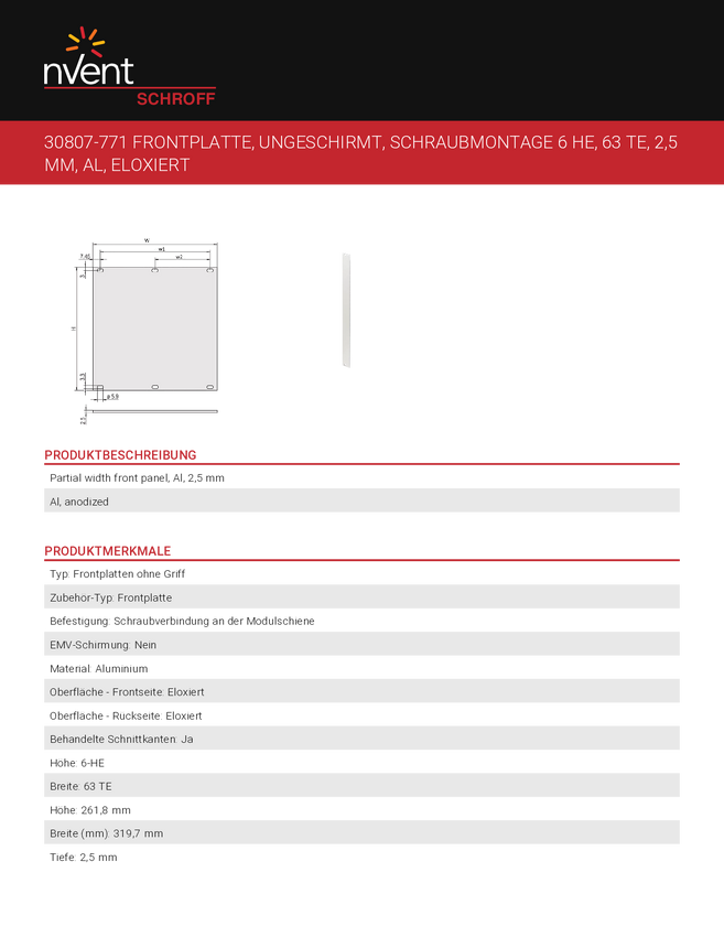 Płytka przednia nVent SCHROFF 30807771 30807771, 1 szt.