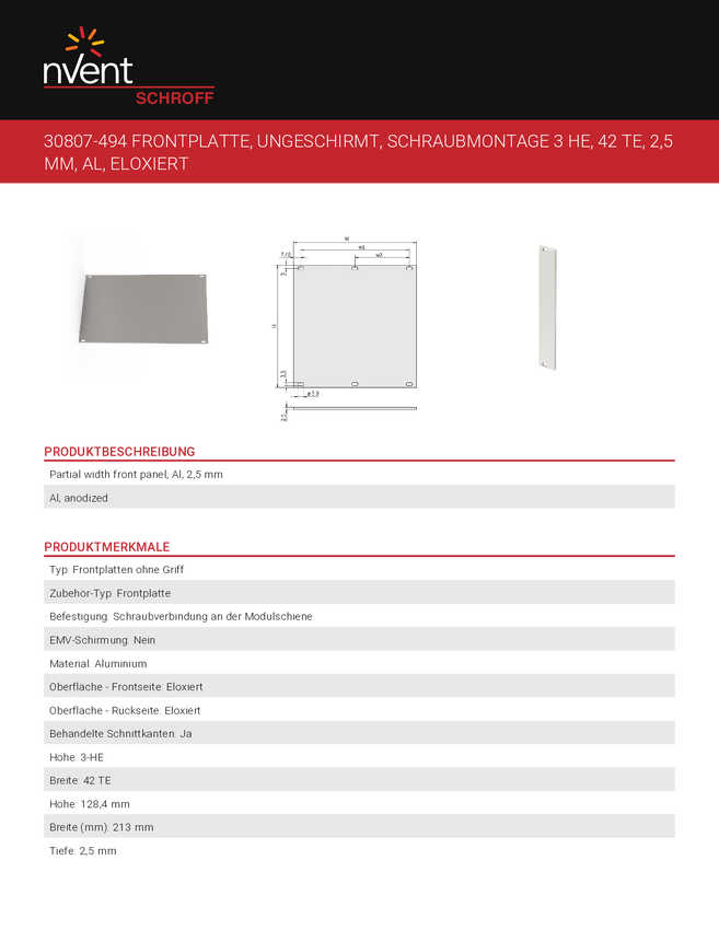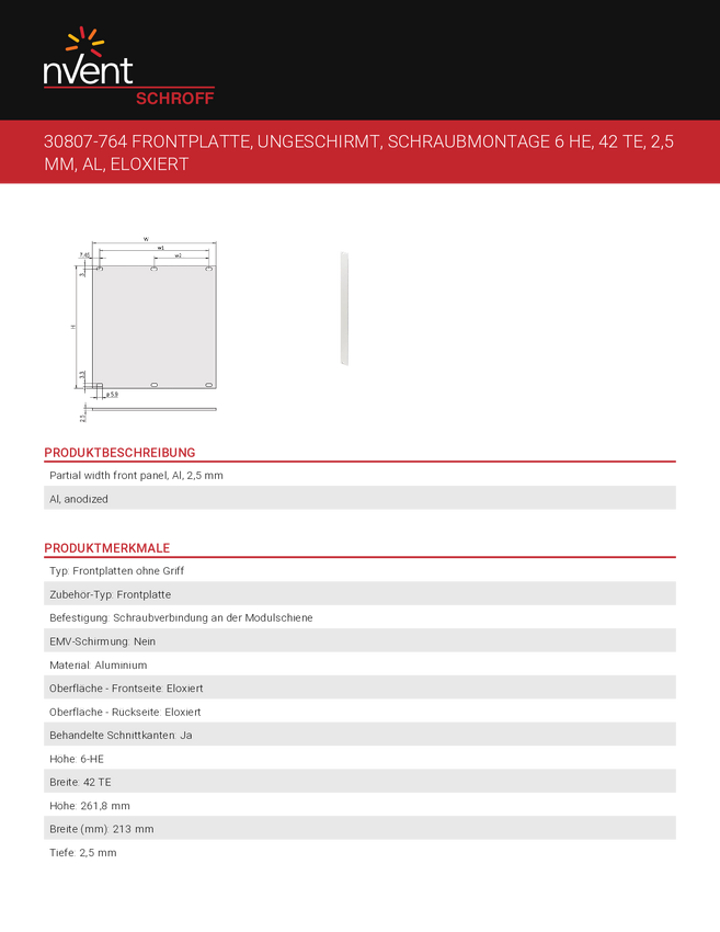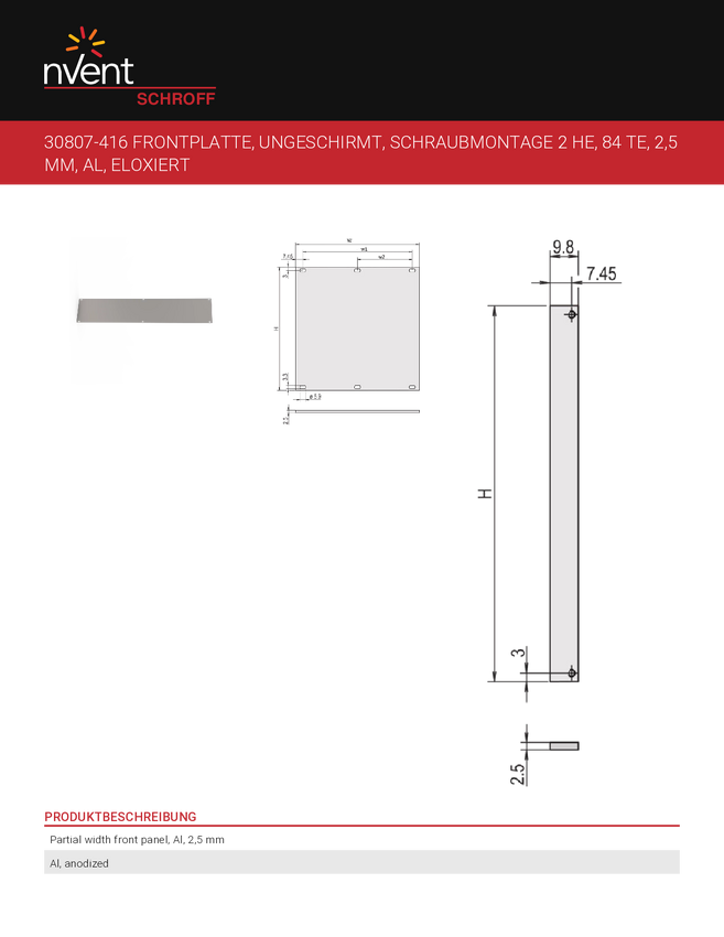 Płytka przednia nVent SCHROFF 30807764 30807764, 1 szt.