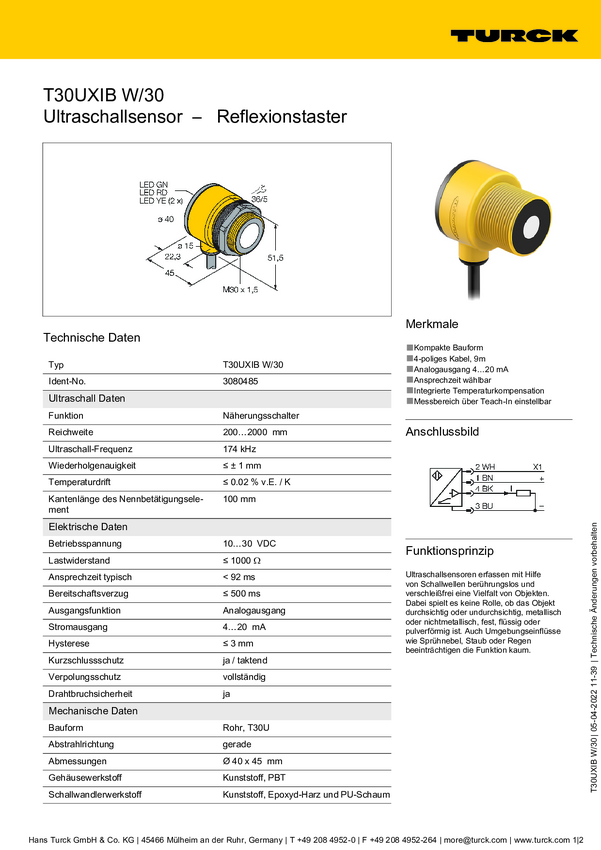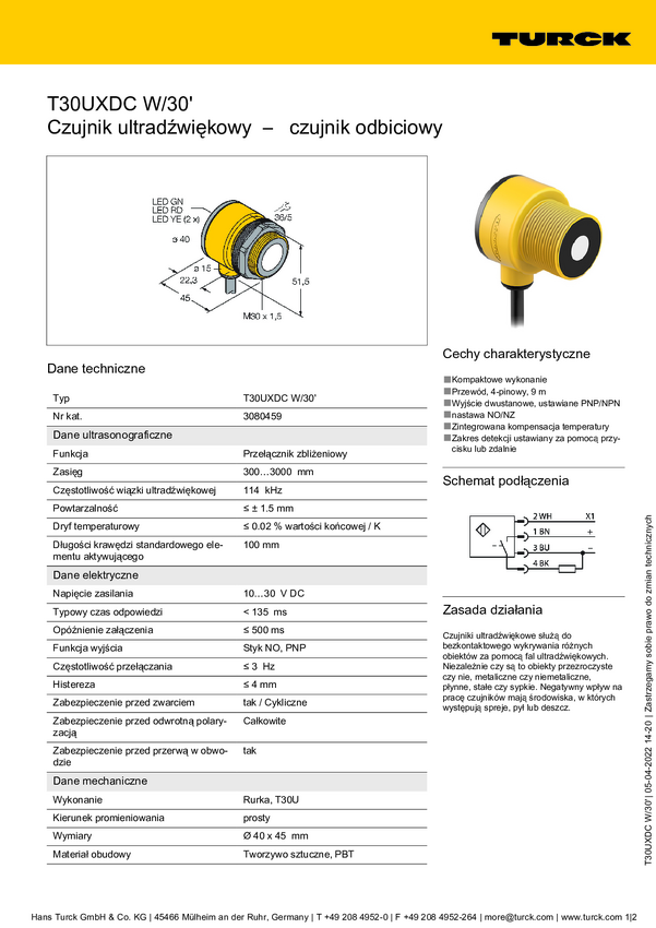 Czujnik umiejscowienia Turck 3080978 1 szt.