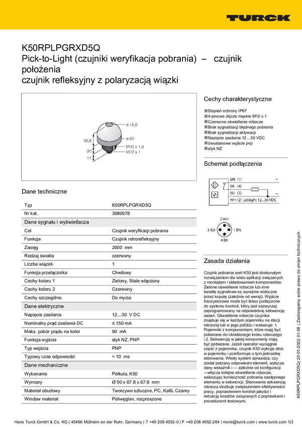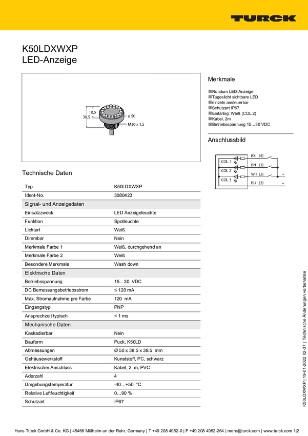 Lampa okrągła Turck K50LDXWXP światło ciągłe