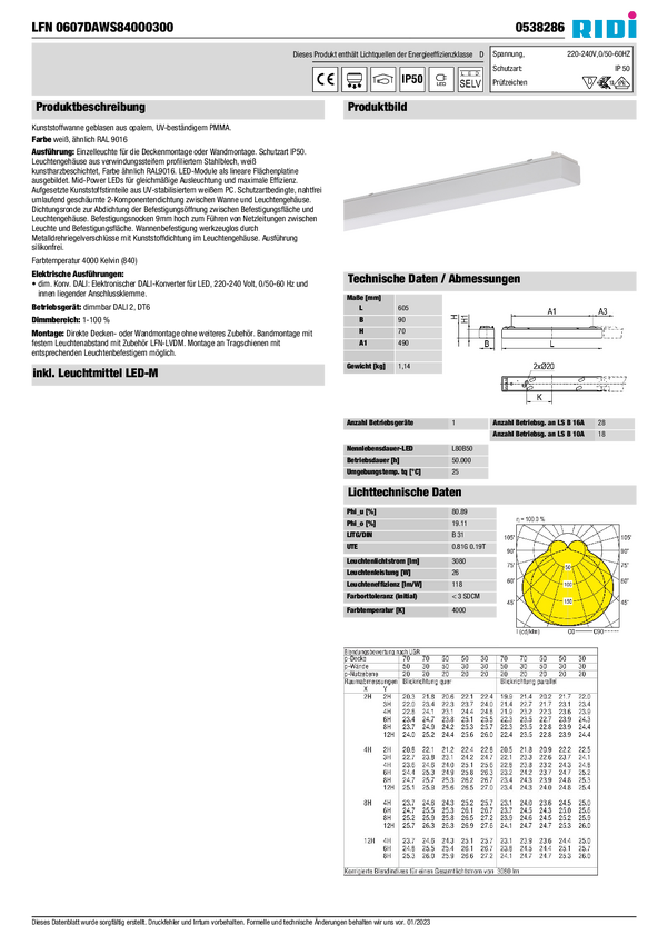 Oświetlenie wewnętrzne LED RIDI SPG0830001AH SPG0830001AH 25 W 3080 lm