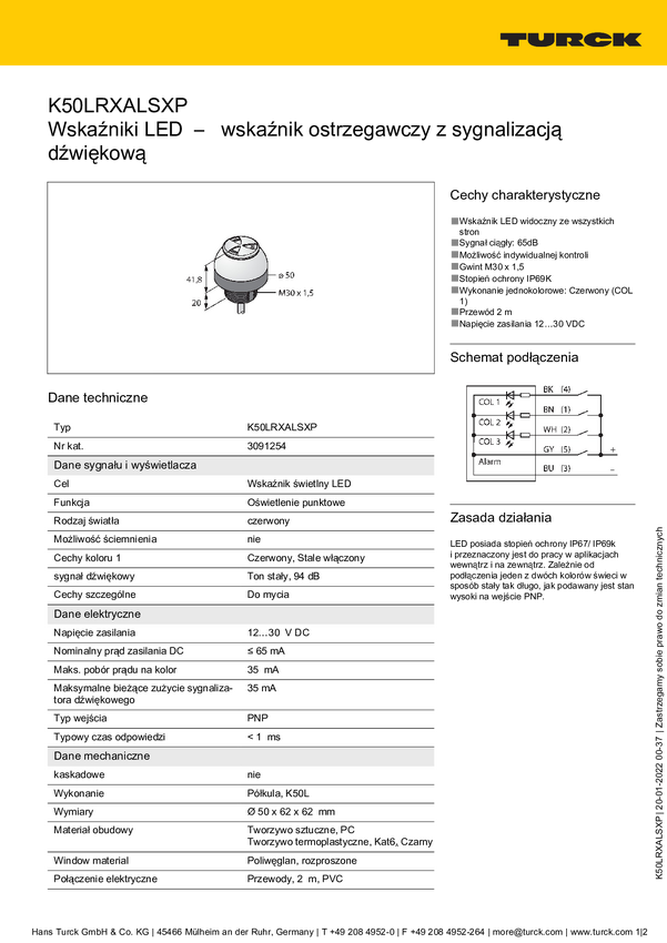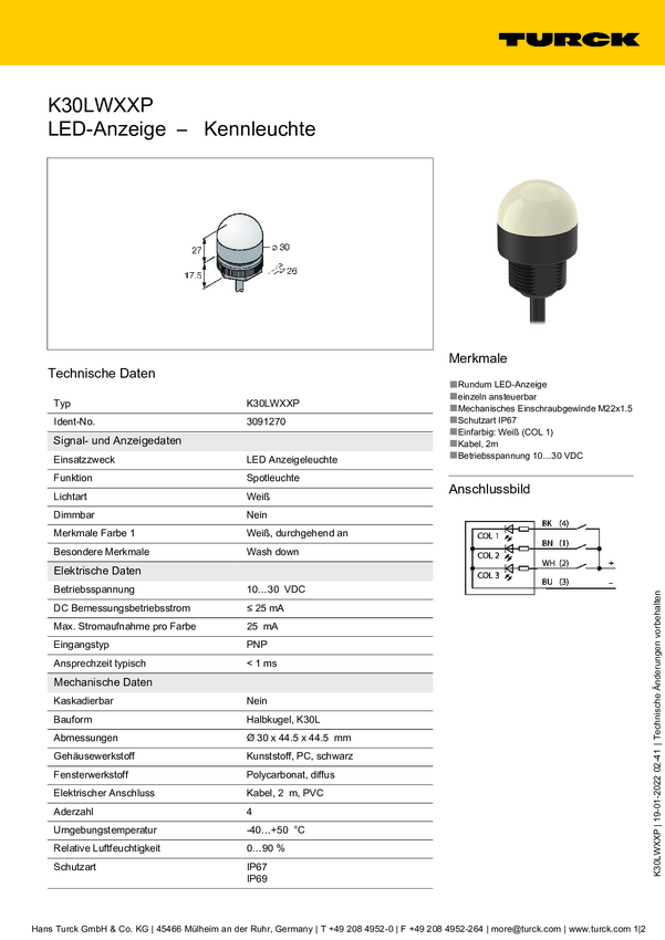 Lampa okrągła Turck K30LWXXP światło ciągłe