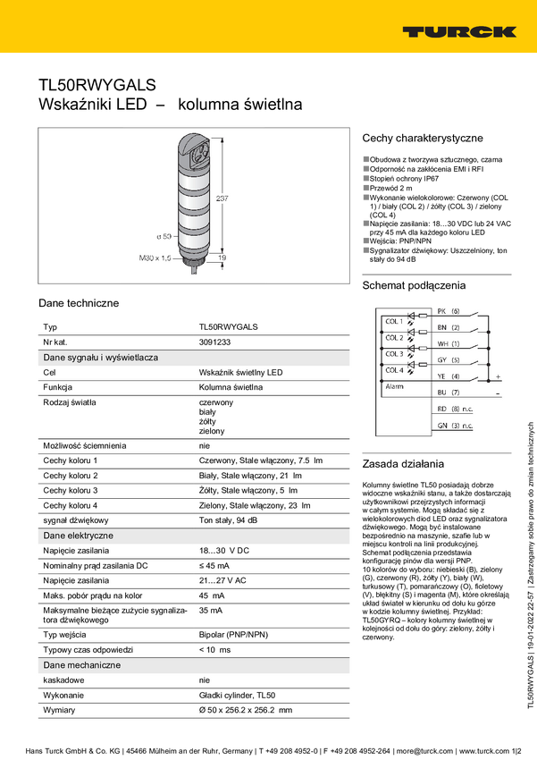 Kolumna sygnalizacyjna Turck TL50BLGYR6PQPMA-91210 3091210 1 szt.
