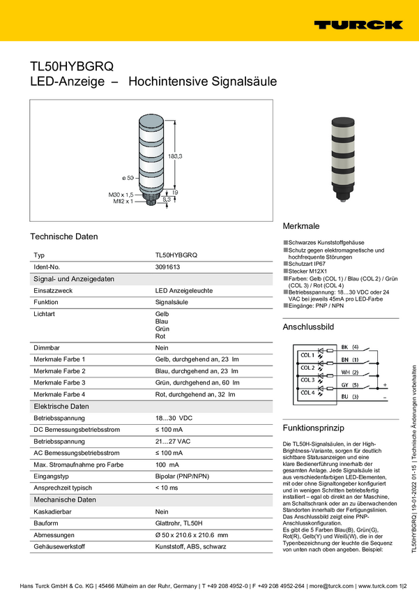 Kolumna sygnalizacyjna Turck TL50HYBGRQ 3091613 1 szt.