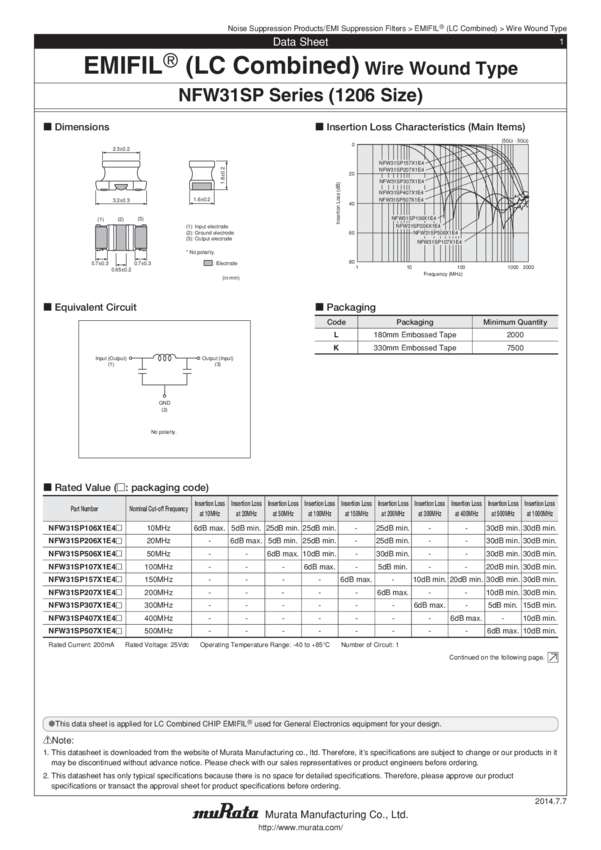 EMI Filter >30dB Flat Style SMD T/R