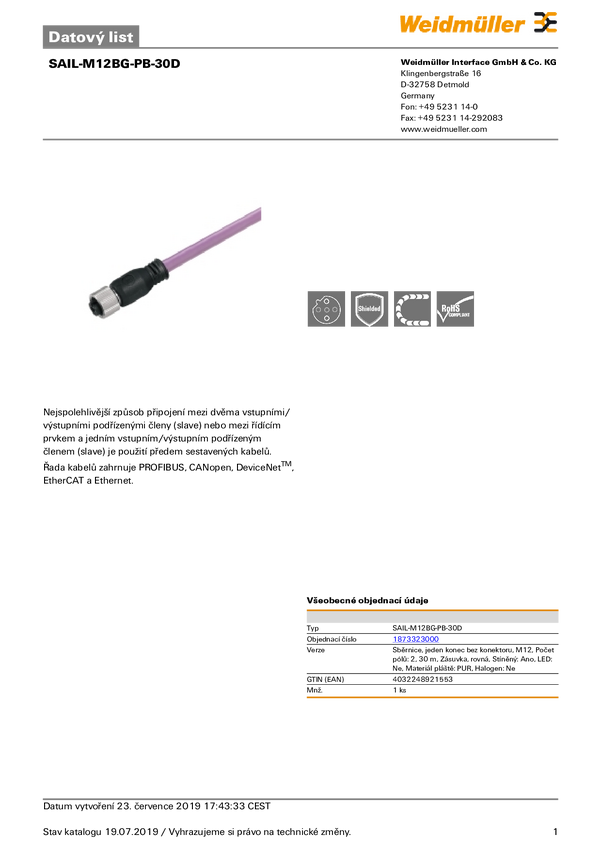 Przewód czujników/elementów wykonawcznych Weidmüller SAIL-M12BG-PB-30D 1873323000 1 szt.