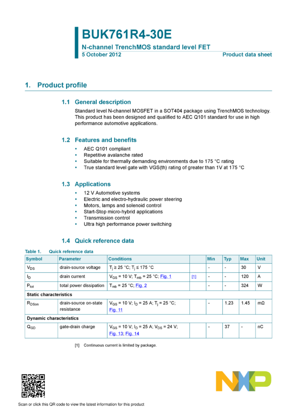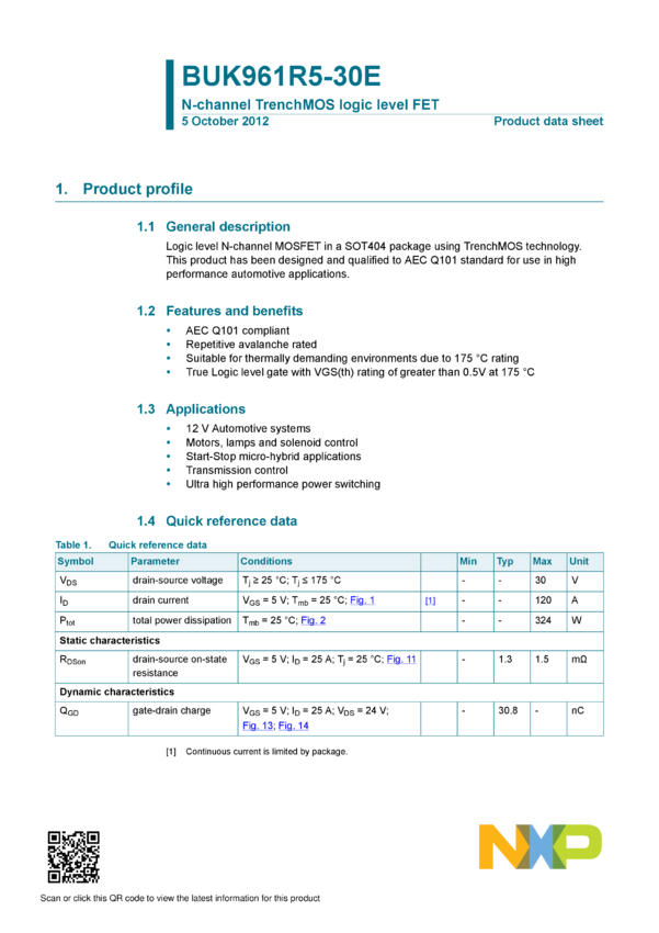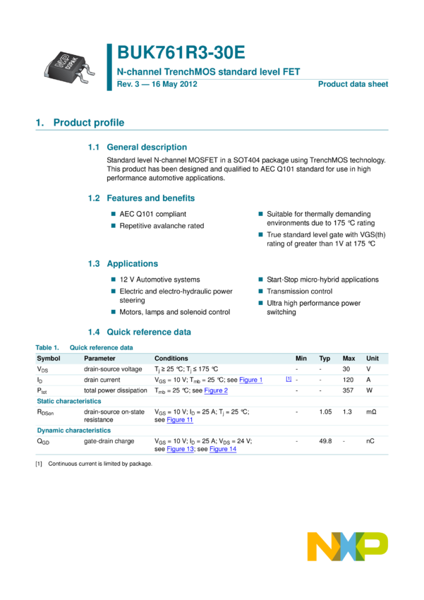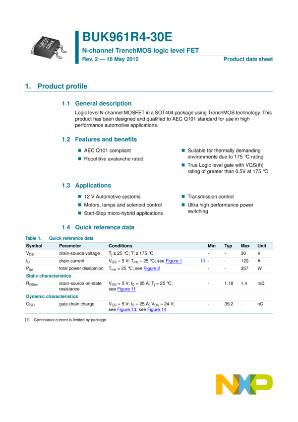 N-channel 30 V, 10 mΩ logic level MOSFET in LFPAK33