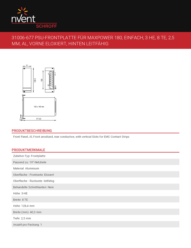 nVent SCHROFF 31006677 Płytka przednia 1 szt.