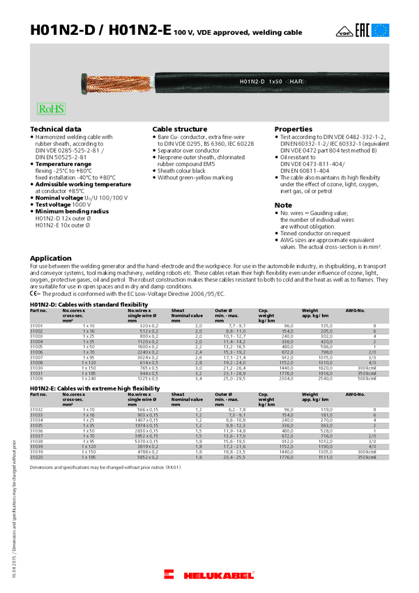 Przewód spawalniczy Helukabel 31006, 1 x 70 mm², Żyła miedziana, nieizolowana, z cienkich drucików wg DIN VDE 0295, Prod