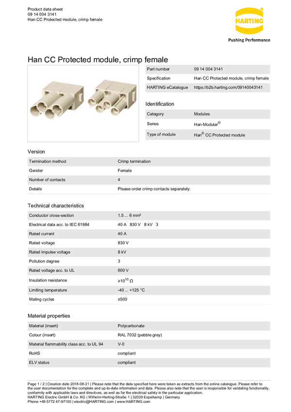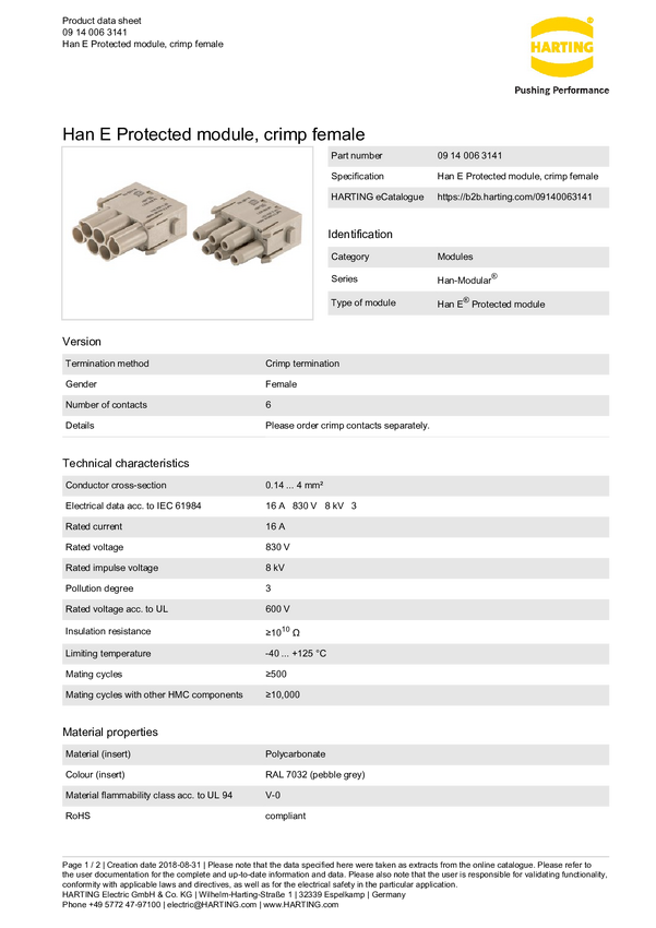 Złącze przemysłowe 09 14 006 3141 Harting Zawartość: 1 szt.
