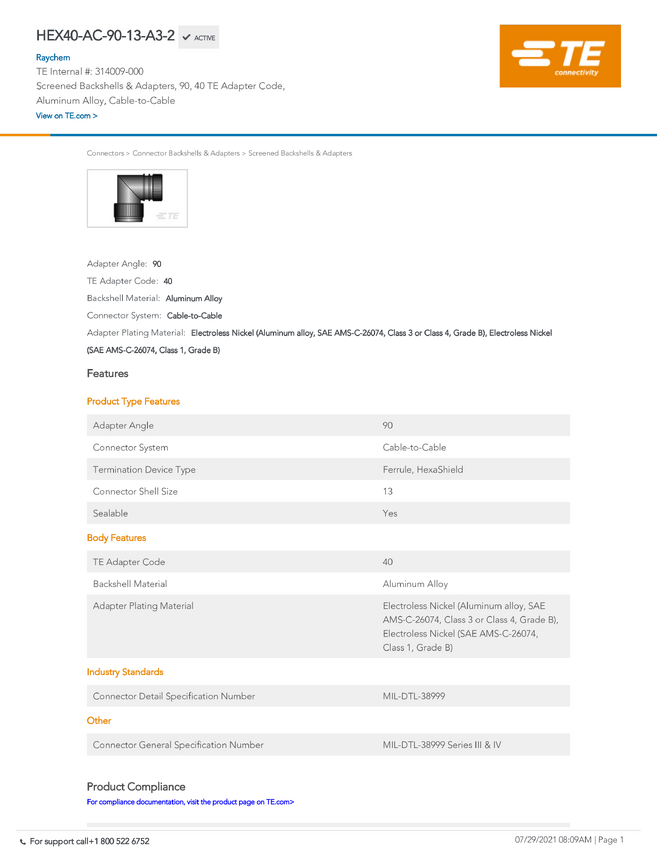 TE Connectivity 314009-000 TE RAY Hexashield Products, 1 szt.