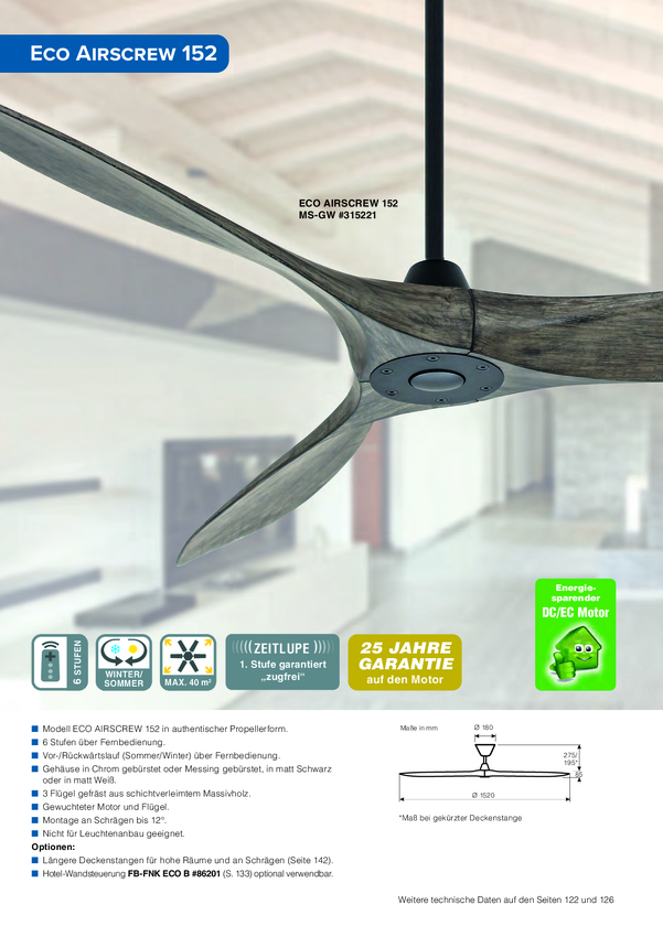 CasaFan ECO AIRSCREW 152 BN-NT Wentylator sufitowy 28 W (Ø x W) 1520 mm x 275 mm chrom pilot zdalnego sterowania, tryb z