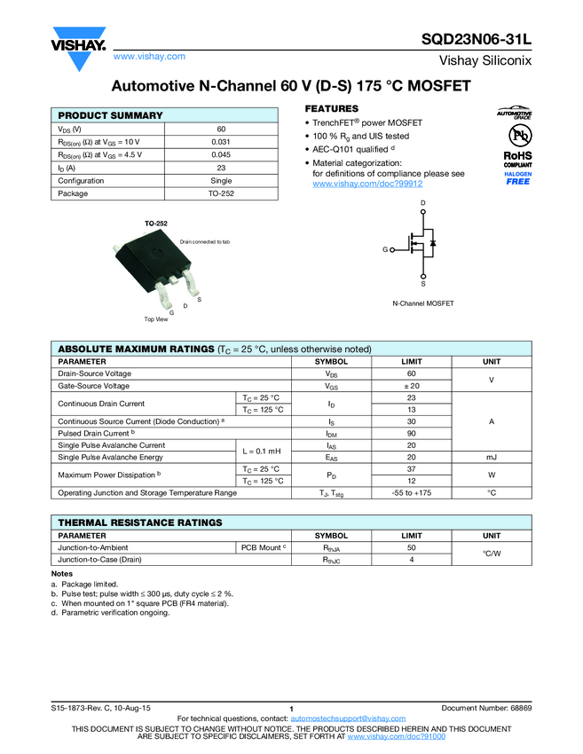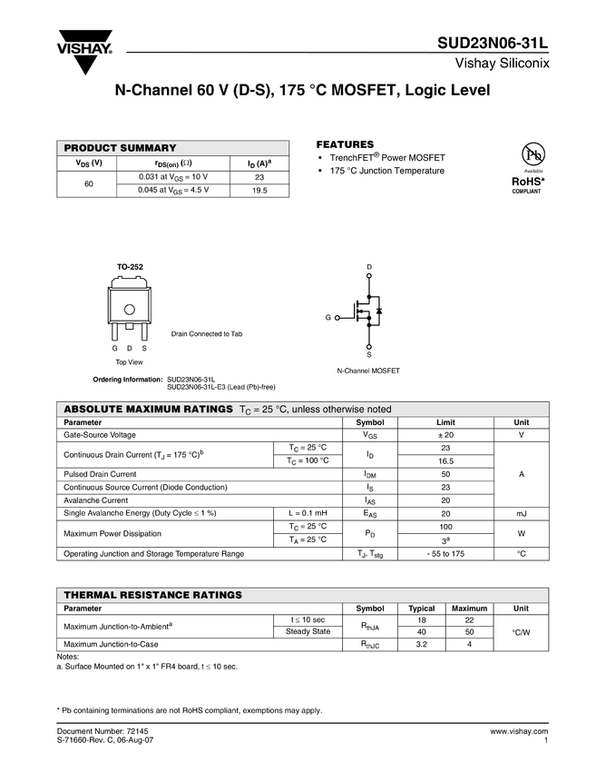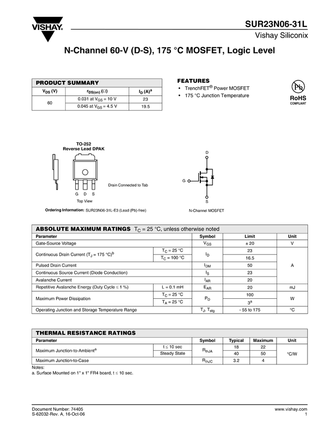 'N-Channel 60-V (D-S), 175C MOSFET, Logic Level'