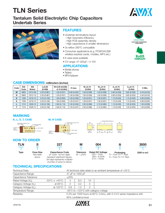 Cap Tant Solid 100uF 3V I CASE 20% (3.2 X 1.6 X 1mm) SMD 3216-10 T/R