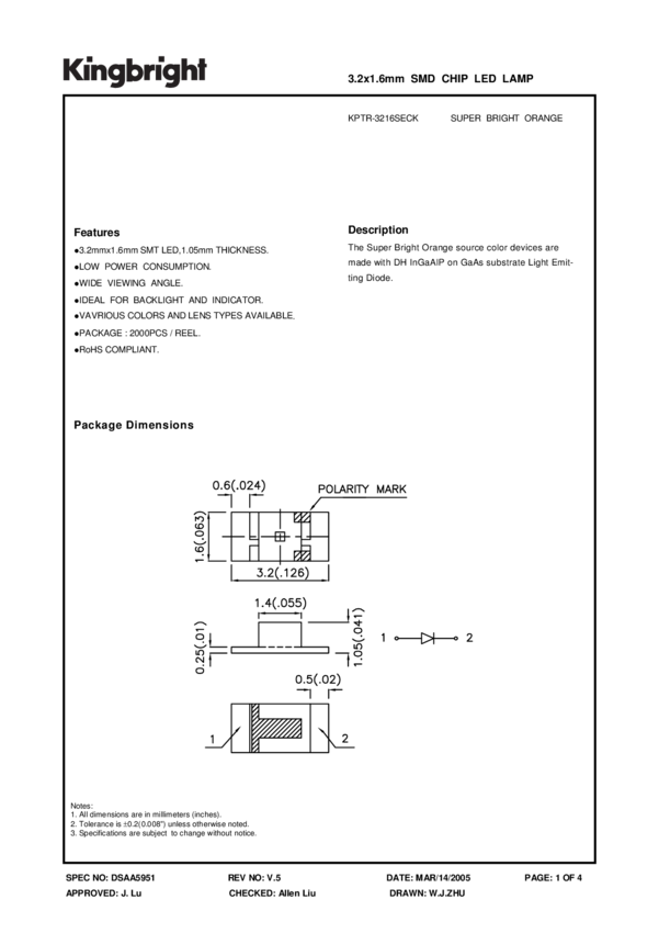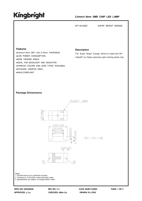 LED Uni-Color Orange 610nm Chip LED 2-Pin SMD T/R