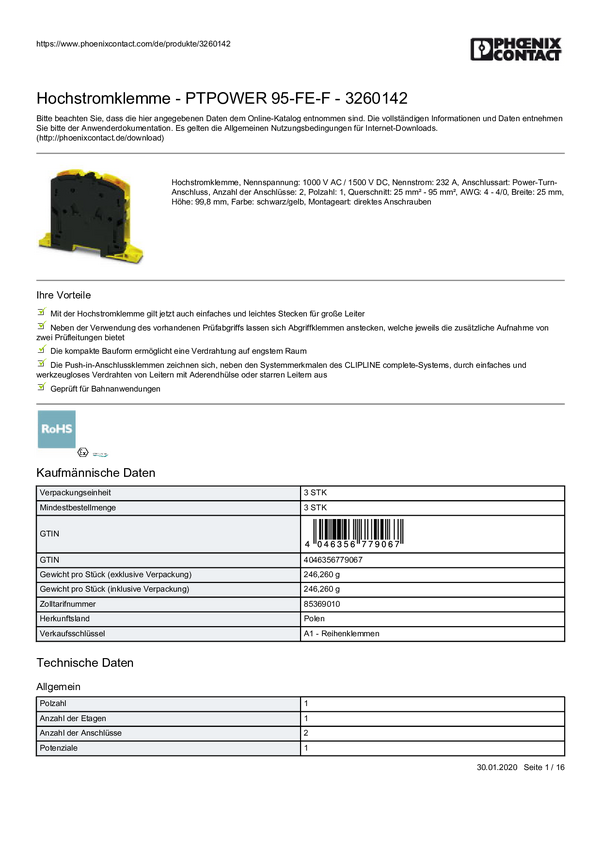 Zacisk wysokoprądowy Phoenix Contact 3260142 Plug-In 3 szt.