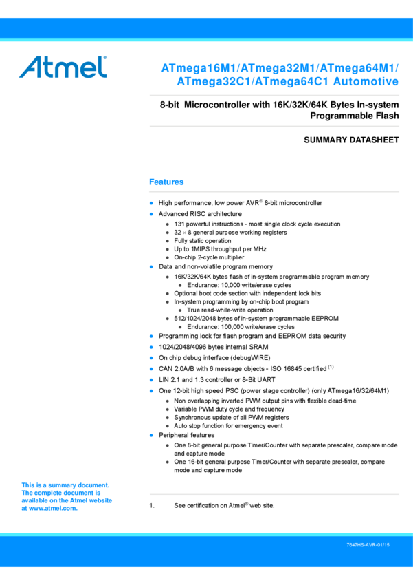 ATmega16M1/32C1/32M1/64C1/64M1 Automotive Datasheet