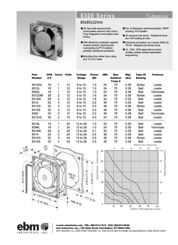 DC Fan Ball Bearing 24V 2.5W 32CFM 36dB Flange Mount