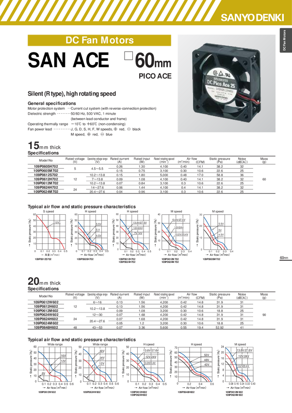 Wentylator 60 x 60 x 15 mm 5V DC (4,5-5,5); łożysko kulkowe 4100 RPM 1,3W; prąd 260 mA; 0,4m3/min; 32dBA Sanyo Denki