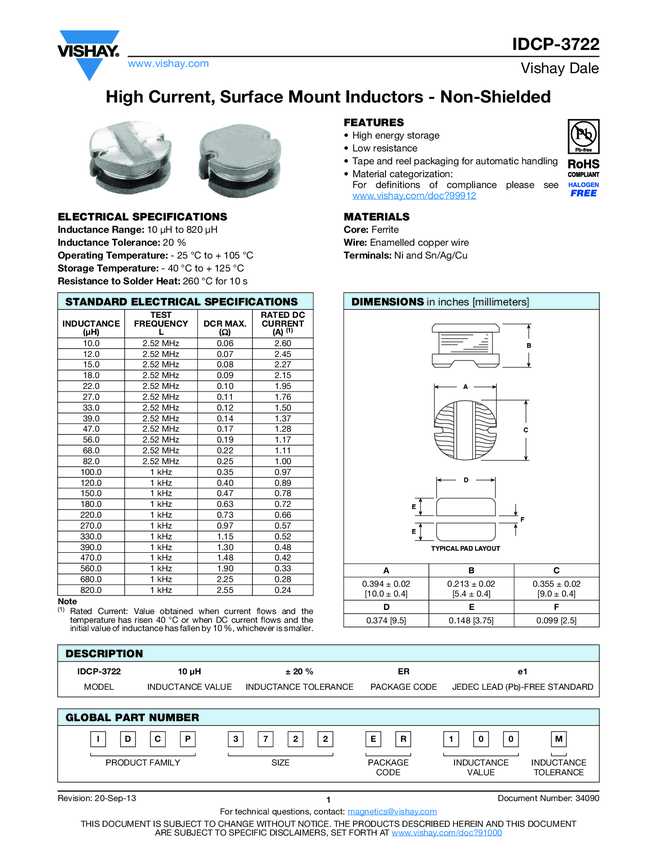 Ind High Current Wirewound 330uH 20% 1KHz Ferrite 520mA T/R