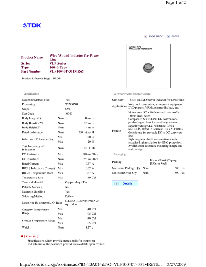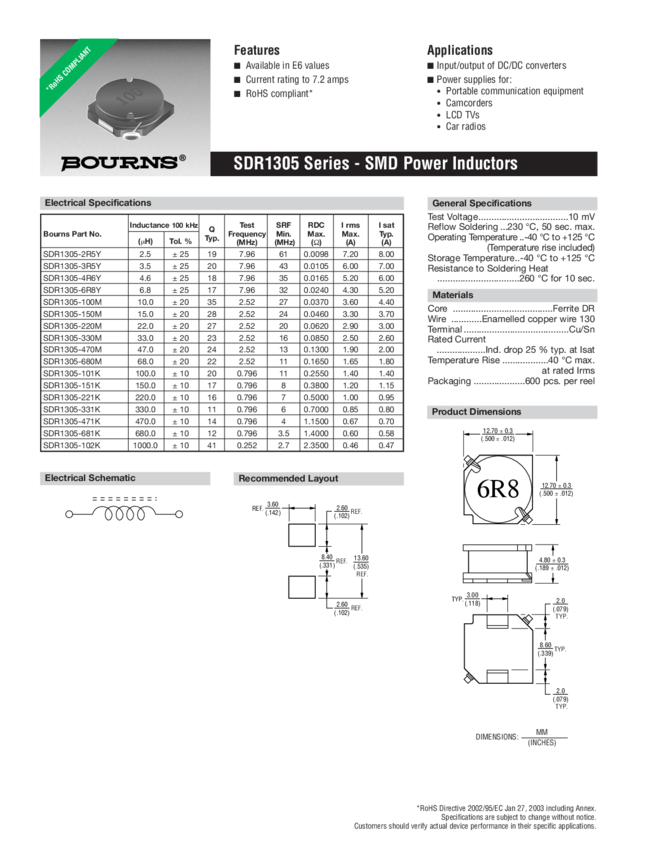 Ind Power Shielded 330uH 20% 100KHz Ferrite 270mA Blister T/R