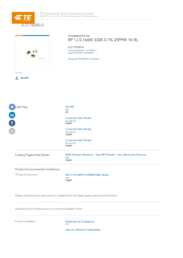 Res Thin Film 0805 332 Ohm 0.1% 1/10W ±10ppm/°C Molded SMD Paper T/R